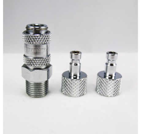 These disconnects allow versatile use of multiple airbrushes with one air source and hose. Completely shuts off air flow when disconnected and fits all 1/8" air hoses and airbrushes. With its quick release action, changing airbrushes is fast and easy. 100% Compatible with the 51-038 Badger adapter and the 51-039 Paasche adapter also on this site.