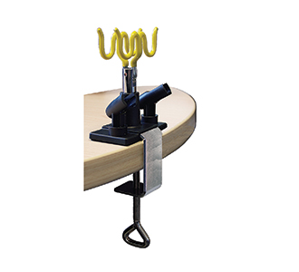 Paasche Deluxe Airbrush Hanger. Can hold up to 4 airbrushes at one time. Good for any airbrush brand of airbrush. The adjustable clamp fits most table sizes.