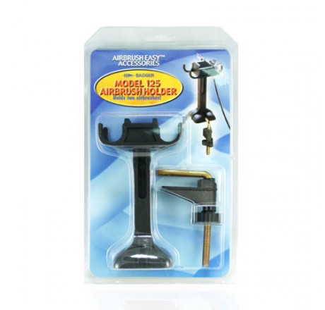 Model 125 Airbrush Holder - holds two airbrushes. * Handy, sturdy, durable * Prevents airbrushes from falling over or being dropped * Stationary support allows easier airbrush placement