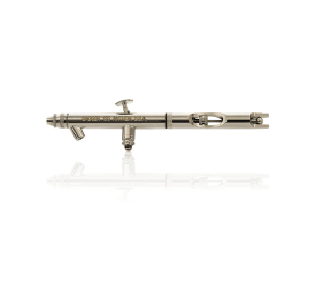 The Anthem, Model 155 airbrush, is the most comfortable, reliable, proficient, cost effective, user friendly airbrush ever. The two angle needle tip precisely mates with the Anthem's cone shaped nozzle enabling a single needle/nozzle configuration to spray virtually any desired material, thus eliminating the need for fine, medium, or large needle/nozzle variations. The Anthem's body design provides exacting balance and long term user comfort. The Anthem also provides flawless performance in the most rigorous of production airbrushing environments.