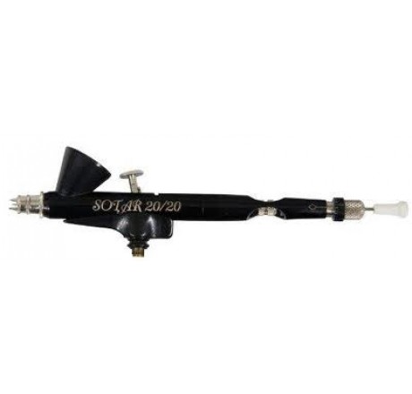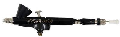 The 20/20 provides the professional illustrator with an airbrush capable of producing the ultimate in fine line detail. It is more precise, more comfortable, and more reliable than any competitor. When fine line detail or the finest paint atomization for a “soft” spray pattern is required, SOTAR is the only choice. Finely pigmented properly reduced paints, water colors, inks, dyes, and low viscosity acrylics can be sprayed with the 20/20. The elongated body maintains an efficient distance between trigger and paint reservoir. The trigger and back lever assemble easily thanks to our innovative “track and winged” design. The MODEL 2020-2F has a mounted 1/12 ounce color cup which allows for extended use before having to add color. The fine (black) needle / nozzle will spray a "hair” line to 3/4 inch (19 millimeter) spray pattern. Kit includes SOTAR 2020-2F with an extra fine needle. Proudly made in the USA.