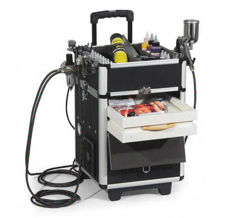 The Maxx Jet compressor can run up to four airbrushes at the same time or a low-volume spray gun. Housed in a portable and sturdy case with a 2.5 litre air tank and storage galore for all your airbrushes, paints and accessories, the Maxx Jet really allows you to take your art on the road.